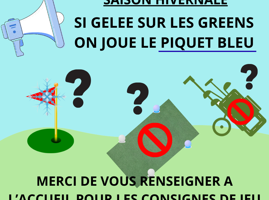 👉 Si oui : jeu au piquet bleu et pas d’accès au green 🚫 -